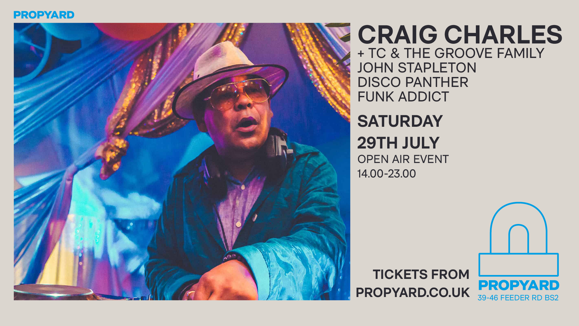 Book TicketsGet ready to groove to the beats of the legendary Craig Charles as he takes over our Courtyard on Saturday 29th July from 2:00-11PM.